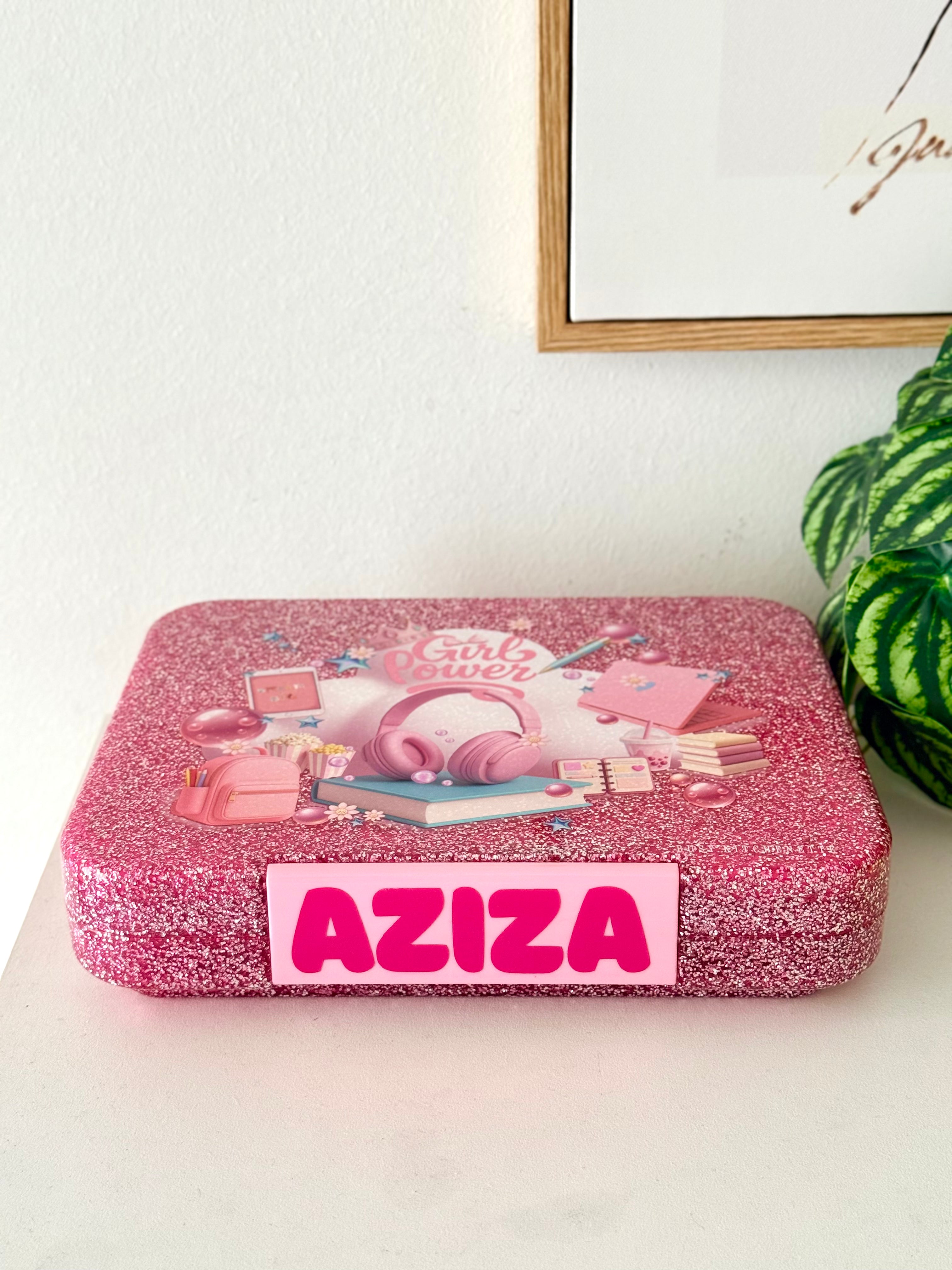 Girl-Power BPA-Free Pink Glitter Large Bento Lunch Box